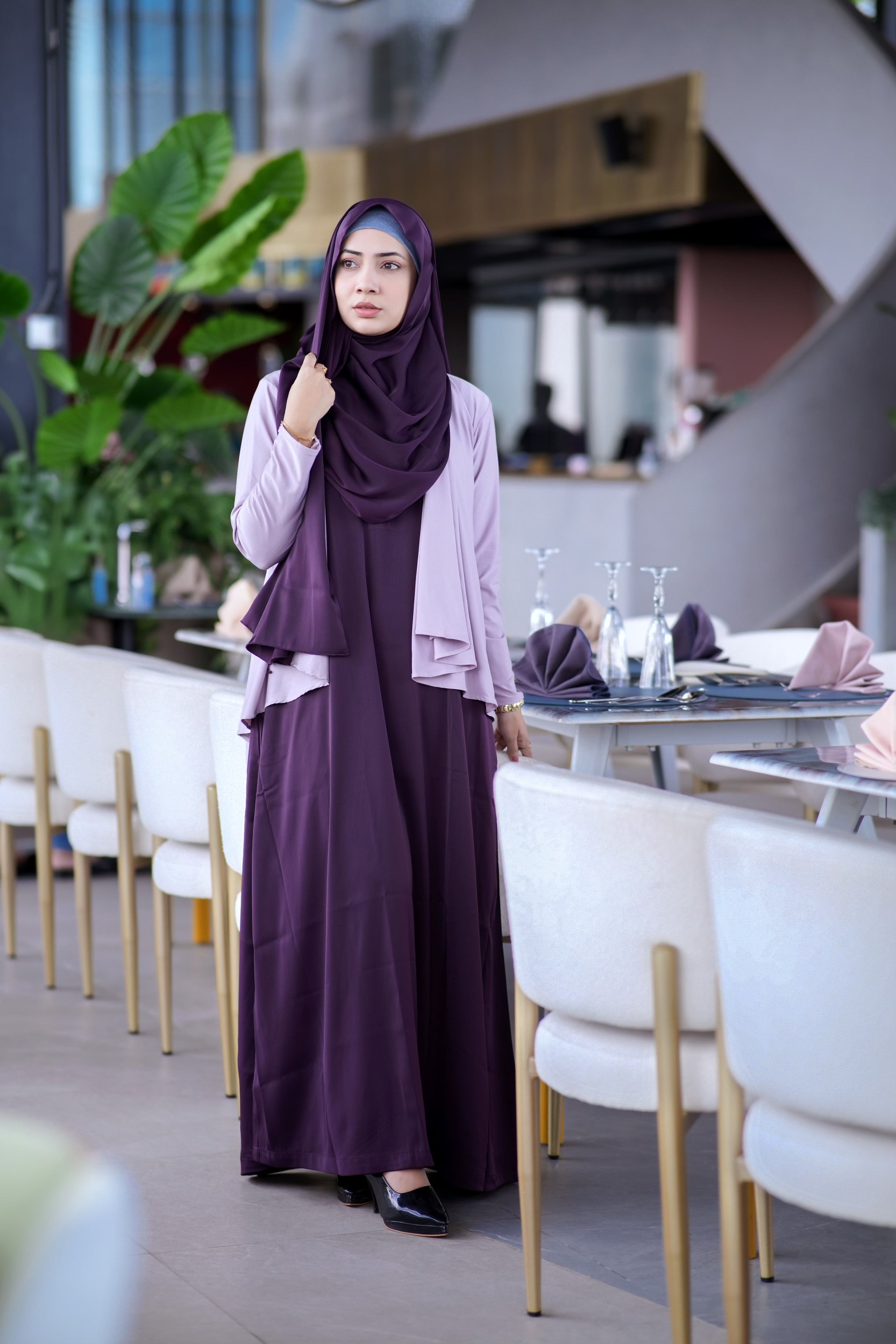 Bianca two piece Abaya with Shrug set for Umrah - Modest Collection